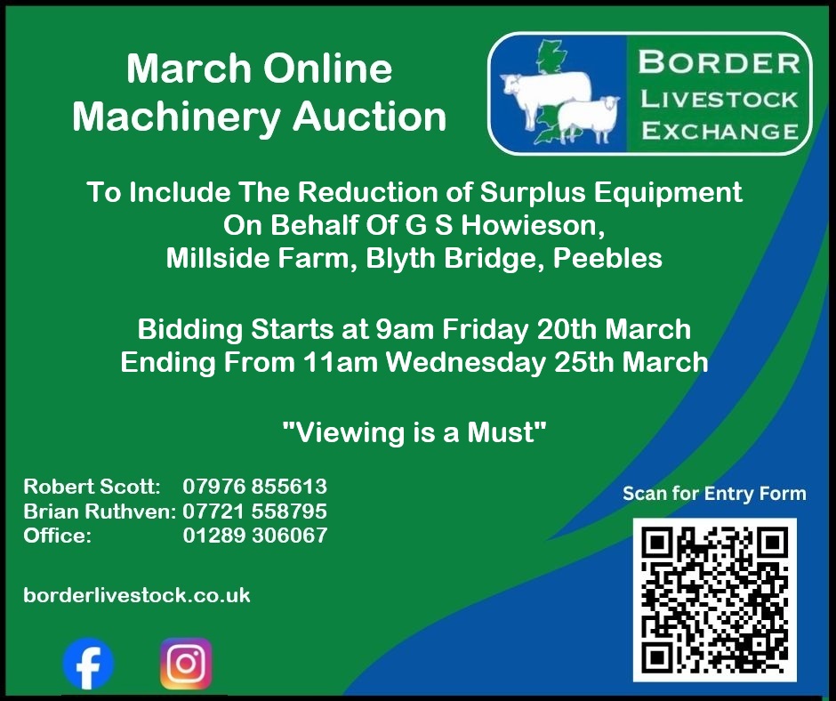 – Est 1995 – The Farm Sale Specialists Wester Wooden, Kelso – Dec 22 £191,000 Grimme Potato Harvester – Est 1995 – The Farm Sale Specialists “Top in our Field“ Floors Farming, Kelso – Jan 24 £253,000 Claas 750 Trion Combine Harvester – Est 1995 – The Farm Sale Specialists Wester Wooden, Kelso – Dec 22 £114,000 Case Puma Tractor – Est 1995 – The Farm Sale Specialists Ellemford, Duns – May 22 – Est 1995 – The Farm Sale Specialists Greenhouses, Northumberland – March 21 – Est 1995 – The Farm Sale Specialists Knowes Farm, Dunbar – Oct 20 – Est 1995 – The Farm Sale Specialists Newmills, Lauder – Nov 18 – Est 1995 – The Farm Sale Specialists – Est 1995 – The Farm Sale Specialists Click here Entry Forms Click here